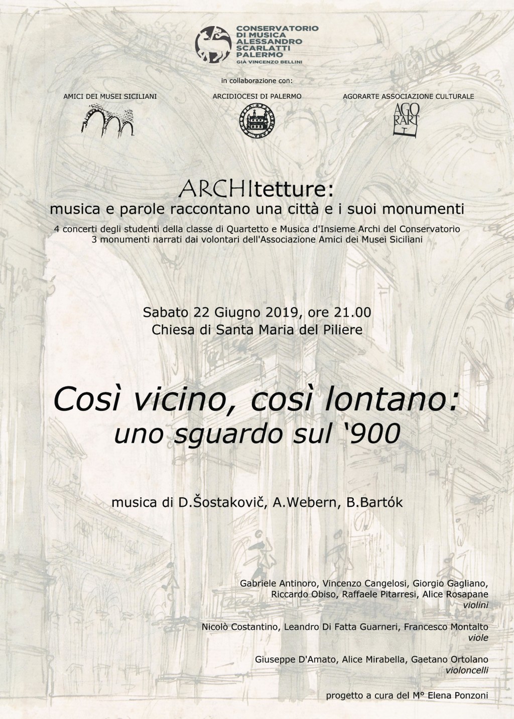 Progetto del Conservatorio di Palermo in collaborazione con Amici dei Musei Siciliani, Arcidiocesi di Palermo e Agorarte Associazione Culturale, giunto quest’anno alla sua quinta edizione, il format prevede il racconto del luogo che ospita il concerto a cura dei volontari dell’Associazione Amici dei Musei Siciliani ed, a seguire, l’esecuzione dei brani in programma raccontati dal Maestro Elena Ponzoni ed eseguiti dagli studenti del conservatorio.