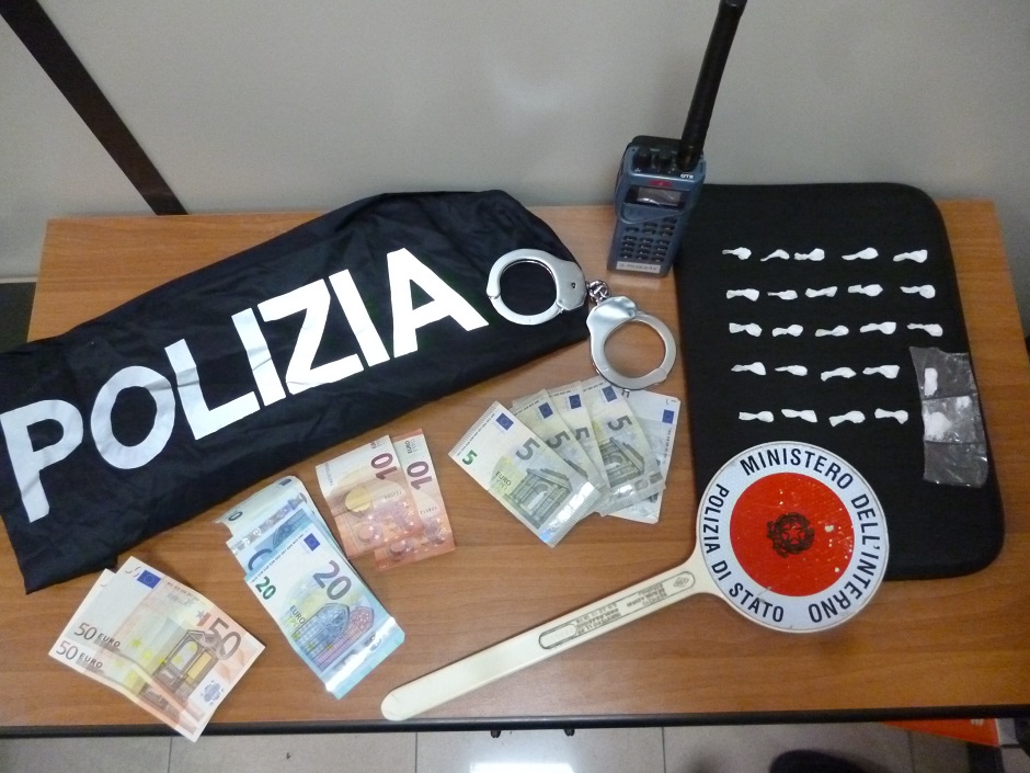 Nel corso del controllo e della perquisizione nella tasca interna del giubbotto sono state trovare le dosi di droga e una cospicua somma di denaro.
