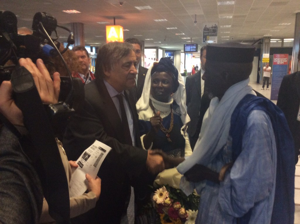Ad accoglierli c’era il figlio, anche il sindaco di Palermo Leoluca Orlando, Fabio Giambrone presidente e Giuseppe Mistretta, amministratore delegato, della Gesap la società di gestione dell’aeroporto che ha sostenuto le spese di viaggio.