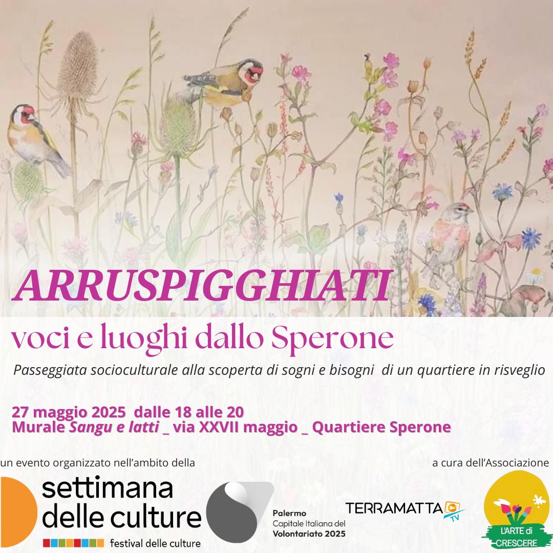 Una passeggiata per ascoltare, osservare, partecipare. Nella cornice della 14ª Settimana delle Culture e nell’anno in cui Palermo è Capitale Italiana del Volontariato, l’associazione L’Arte di Crescere lancia “Arruspigghiati – Alla scoperta di sogni e bisogni di un quartiere in risveglio”, un’iniziativa che invita cittadini, volontari e operatori sociali a esplorare lo Sperone in modo nuovo: passo dopo passo, dentro la realtà viva e pulsante di un territorio che cambia.