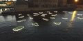 La Sicilia, collocata al centro di 24 opere galleggianti che si accendono ogni sera al tramonto nello specchio d’acqua del porticciolo: sono i Paesi del Mare Nostrum che, insieme alla sagoma della Trinacria, compongono la luminaria-pop concepita da Pellegrino per la Biennale Arcipelago Mediterraneo (BAM, progetto dell’Assessorato comunale alla Cultura).
