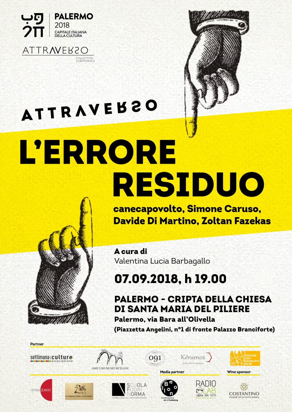 Si inaugura il prossimo 7 settembre alle ore 19.00, presso la Cripta della Chiesa di Santa Maria del Piliere a Palermo, L’errore residuo, intervento site specific ideato e realizzato da canecapovolto, Simone Caruso, Davide Di Martino e Zoltan Fazekas, a cura di Valentina Lucia Barbagallo. Il progetto visitabile in un’unica data (venerdì 7 settembre) e per poche ore (dalle 19.00 alle 22.00) è il risultato di una ricerca condotta collettivamente, più che sulla storia della Cripta della Chiesa di Santa Maria del Piliere, su ciò che è rimasto di essa come “immagine residuale” del suo stesso processo di degenerazione evolutiva, indotto dalla sua intrinseca incapacità di reggere l’instabilità delle sue componenti interne (“vizio intrinseco”).
