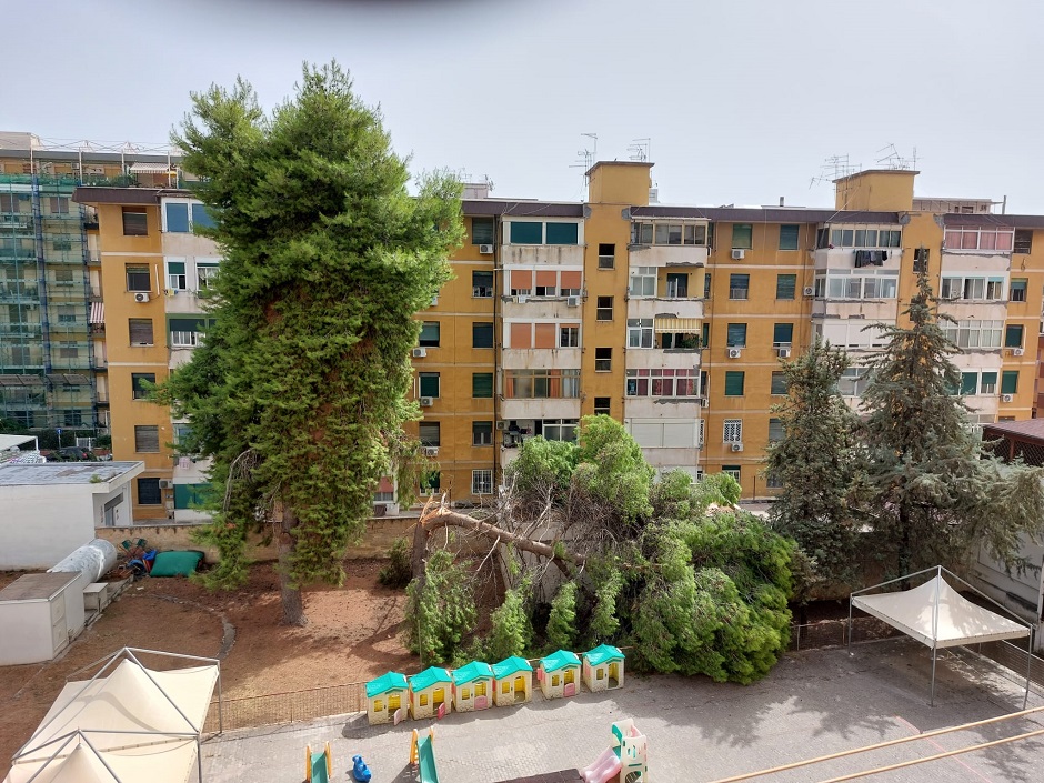 Un albero è stato spezzato dalle intemperie il secondo abbattuto dagli operai del Comune di Palermo tra l’indignazione di alcuni residenti. E’ quanto successo in questi giorni nel giardino della scuola dell’infanzia Primavera di viale Regione Siciliana. Un grosso pino si era spezzato ed era caduto nel giardino della scuola. Per fortuna quando è caduto non c’erano bambini. Dopo un sopralluogo i tecnici di villa e giardini hanno deciso di abbattere anche il secondo.