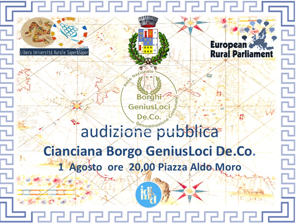 Il prossimo venerdì primo agosto, la cittadina di Cianciana, nell’ambito della Sagra Del Raccolto Dei Grani Antichi,Cereali e Legumi, sarà protagonista di un importante evento culturale dedicato alla valorizzazione del territorio e delle sue tradizioni enogastronomiche. Si svolgerà infatti l’audizione pubblica “Cianciana Borgo GeniusLoci De.Co.”, un percorso che mira a salvaguardare e promuovere chi con fatti concreti si adopera per la difesa identitaria del territorio. L’obiettivo del percorso della Rete Nazionale dei Borghi GeniusLoci DeCo, punta sul fascino della fascia tricolore, attraverso la De.Co. (Denominazione Comunale) un atto politico nelle prerogative del Sindaco per valorizzare l’immenso giacimento ElaioEnoGastronomico del territorio amministrato . Il Sindaco riceverà il riconoscimento della Rete Nazionale dei Borghi GeniusLoci DeCo, con questa motivazione, “Alla laboriosa Comunità di Cianciana si conferisce il riconoscimento di “Custode dell’Identità Territoriale” per aver saputo preservare e tramandare il GeniusLoci”.