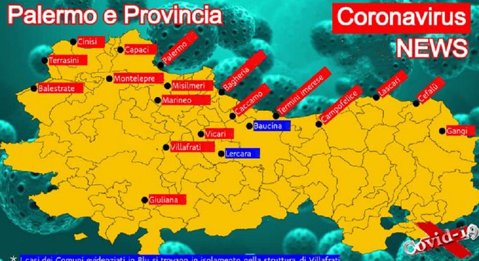 A Montemaggiore Belsito i positivi sono 57 ieri erano 49. a Bagheria sono saliti a 74. Anche a Corleone i casi sono aumentati a 35 ieri erano 30, così come a Partinico che sono 60 ieri erano 51 e a San Giuseppe Jato due casi in più che portano i positivi a 73 e restano 40 a San Cipirello.