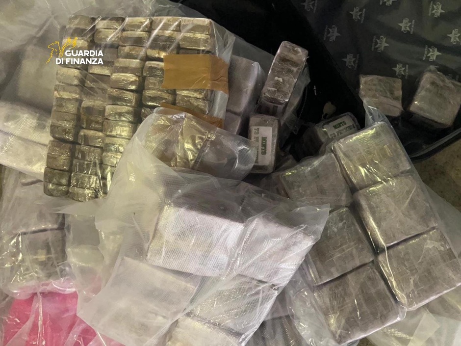 Una pattuglia del nucleo di polizia economico-finanziaria del capoluogo siciliano nel corso della perquisizione del veicolo hanno trovato in due trolley e in un borsone, 11 involucri con 691 panetti di hashish, per un peso di 70 chili.