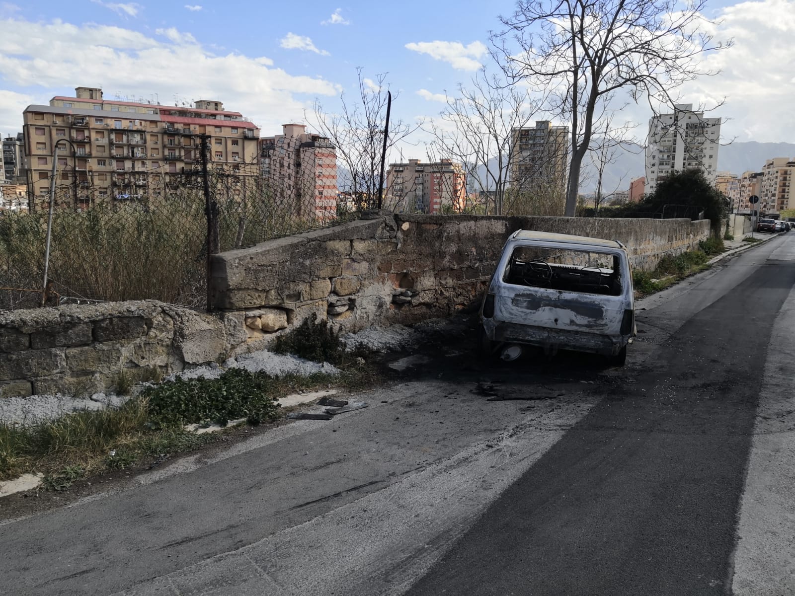 La carcassa di una Fiat Panda andata a fuoco è stata rinvenuta questa mattina in Via Castellana Bandiera a Palermo.