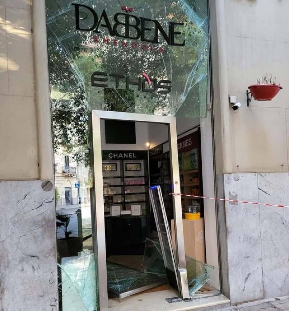 Con l’auto rubata sfondano la vetrina di una profumeria, caccia ai ladri