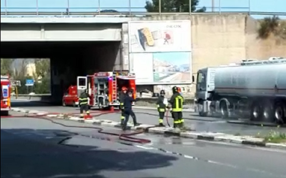 Un’autocisterna ha iniziato a perdere carburante in viale Regione Siciliana. Una situazione molto pericolosa che ha richiesto l’intervento dei vigili del fuoco.