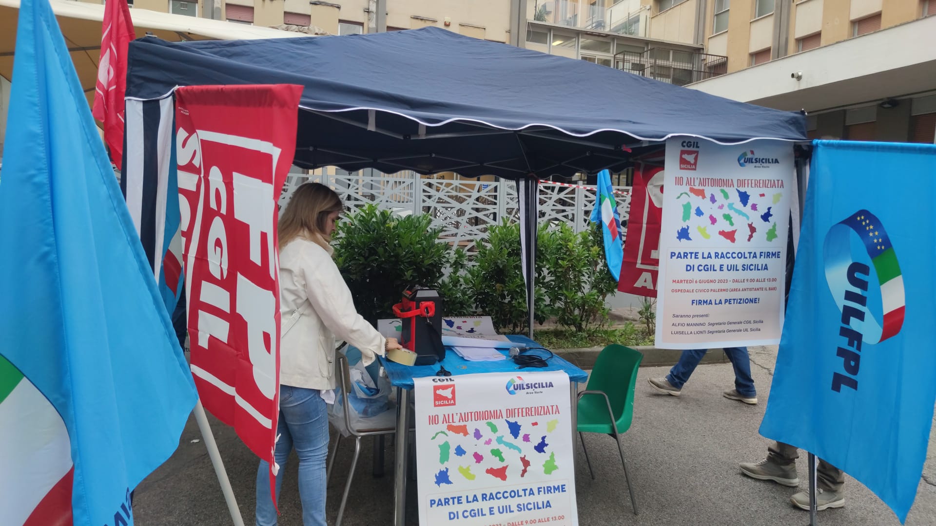 “L’autonomia differenziata abbasserà l’asticella dei diritti fondamentali nelle regioni più deboli del Paese. Si avranno ripercussioni negative sulla sanità, sulla scuola, sulla mobilità: su quei settori insomma che necessitano di interventi di perequazione, di investimenti dello Stato”. E’ quello che sostengono Cgil e Uil Sicilia che hanno dato il via oggi a una raccolta di firme per chiedere al presidente della Regione Renato Schifani di ritirare il suo appoggio al progetto del governo Meloni. I due sindacati hanno scelto emblematicamente l’ospedale Civico di Palermo per allestire la prima postazione e tenuto un presidio. “Per sottolineare – precisano – l’importanza dell’iniziativa contro il provvedimento ‘Spacca-paese”.