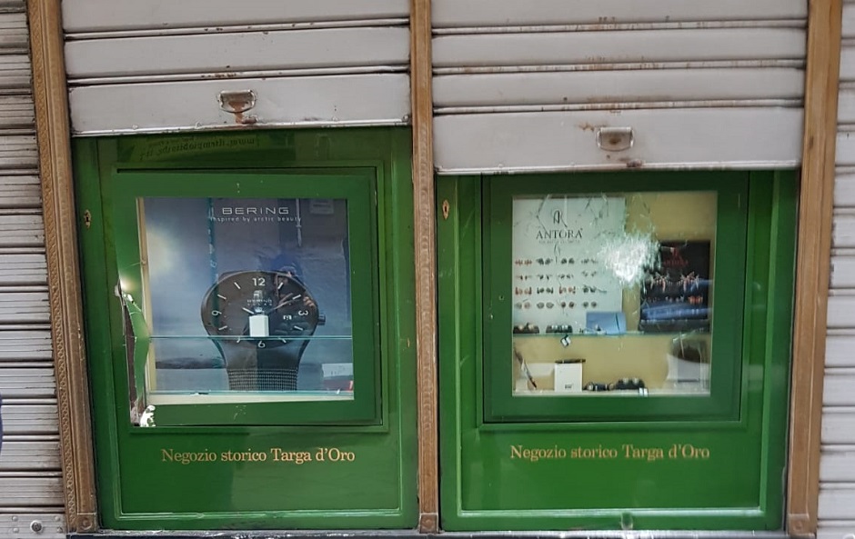 Un gruppo di giovani dalle 5 alle 6 del mattino hanno avuto tutto il tempo di sfondare il vetro e portare via orologi e penne per un valore di 4 mila euro.