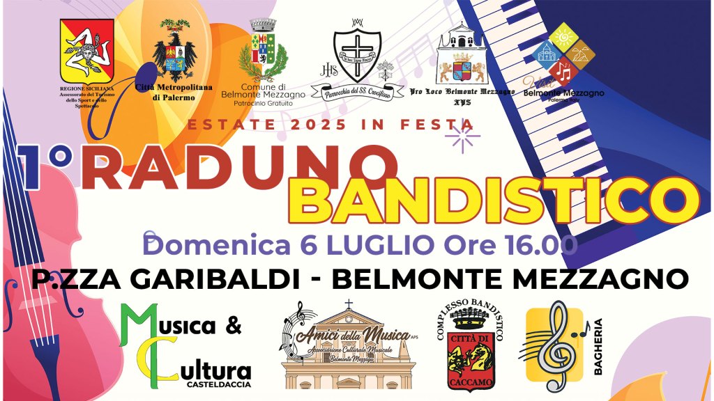 Domenica 6 luglio 2025, le strade di Belmonte Mezzagno si riempiranno di musica, emozione e orgoglio identitario grazie al Raduno Bandistico organizzato con grande cura e passione dalla Pro Loco di Belmonte Mezzagno APS. A partire dalle ore 16.00, un festoso corteo musicale percorrerà le principali vie del paese, coinvolgendo cittadini e visitatori in un pomeriggio ricco di suoni e colori.
