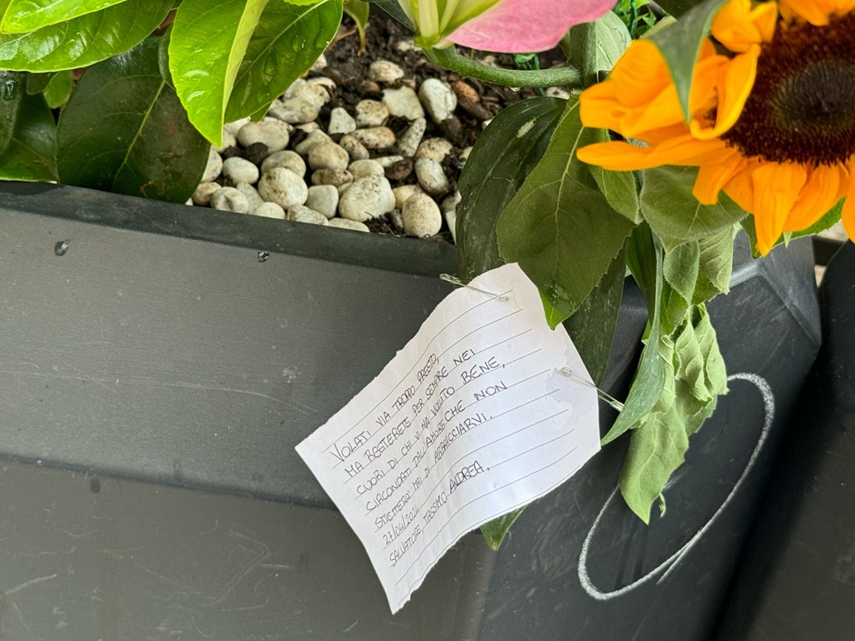 E’ uno dei messaggi appesi nelle fioriere dove ci sono ancora i segni dei fori dei proiettili in via Benedetto D’Acquisto a Monreale nei pressi del pub dove è avvenuta la sparatoria.