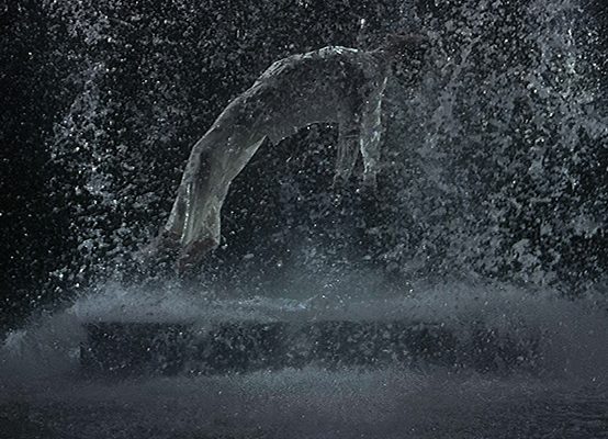 A Palazzo Reale, allora, le Sale Duca di Montalto, sede dell’evento, fanno “reset” per accogliere la mostra e si trasformano nel luogo dell’introspezione. Un luogo in cui il buio è spezzato da lame di luce che fondono, in un unico “luogononluogo”, le opere di Viola con una selezione di preziosissime opere e reperti, intrisi di storia e spiritualità, scelti minuziosamente dalla Fondazione Federico II. Opere e reperti che rappresentano simbolicamente l’acqua come elemento cosmico concepito nei vari contesti storici e culturali. Bill Viola è chiamato così a dialogare (in invio e ricezione) con la storia. Una sfida che ha colto con rigore ed entusiasmo.