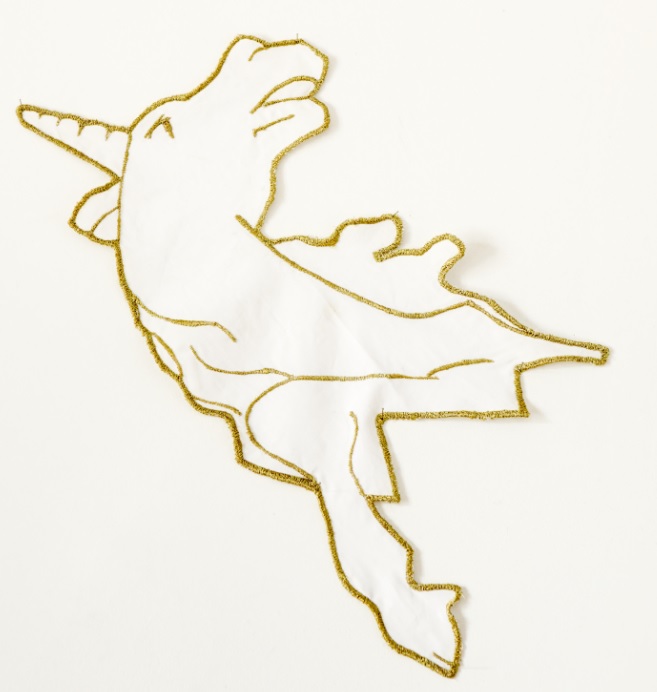 Attraverso l’impiego del ricamo e delle tecniche di tessitura, Graziella Vruna si serve dell’alternanza di pieni e di vuoti, del susseguirsi di segni e linee, per rappresentare il segno del tempo che, scorrendo, traccia il suo percorso. Per l’oratorio di san Lorenzo ha selezionato e ricucito, su tela bianca con filo dorato, alcuni dei dettagli iconografici presenti nell’opera del Serpotta, un vero e proprio corpus di oggetti in grado di infondere un profondo significato all’intero ciclo decorativo dell’aula.