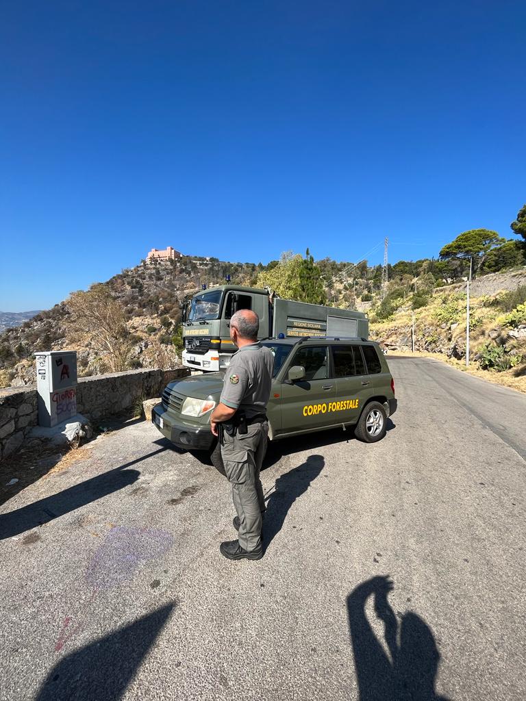 Anche oggi nelle operazioni di spegnimento sono impegnati anche due elicotteri del Corpo Forestale che fanno la spola dal mare alla montagna per effettuare lanci d’acqua.