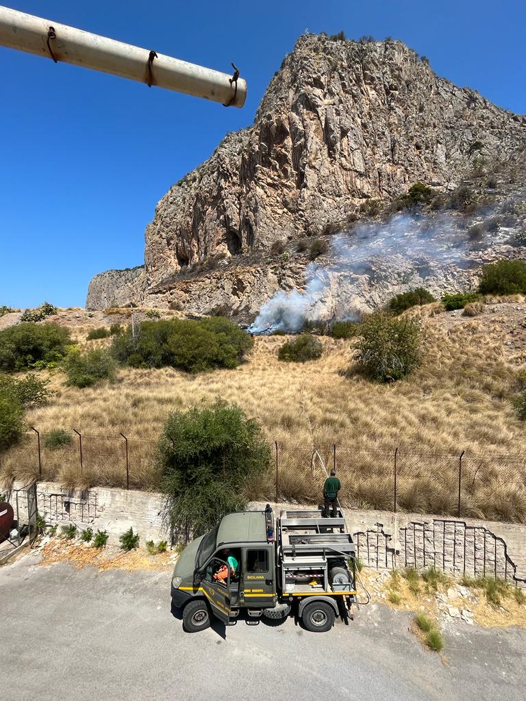 Brucia ancora il costone roccioso a Monte Pellegrino a Palermo nella zona del castel Utveggio. Da sei giorni gli operai del corpo forestale della Regione siciliana sono al lavoro per cercare di circoscrivere i roghi che da giorni divampano nella zona.