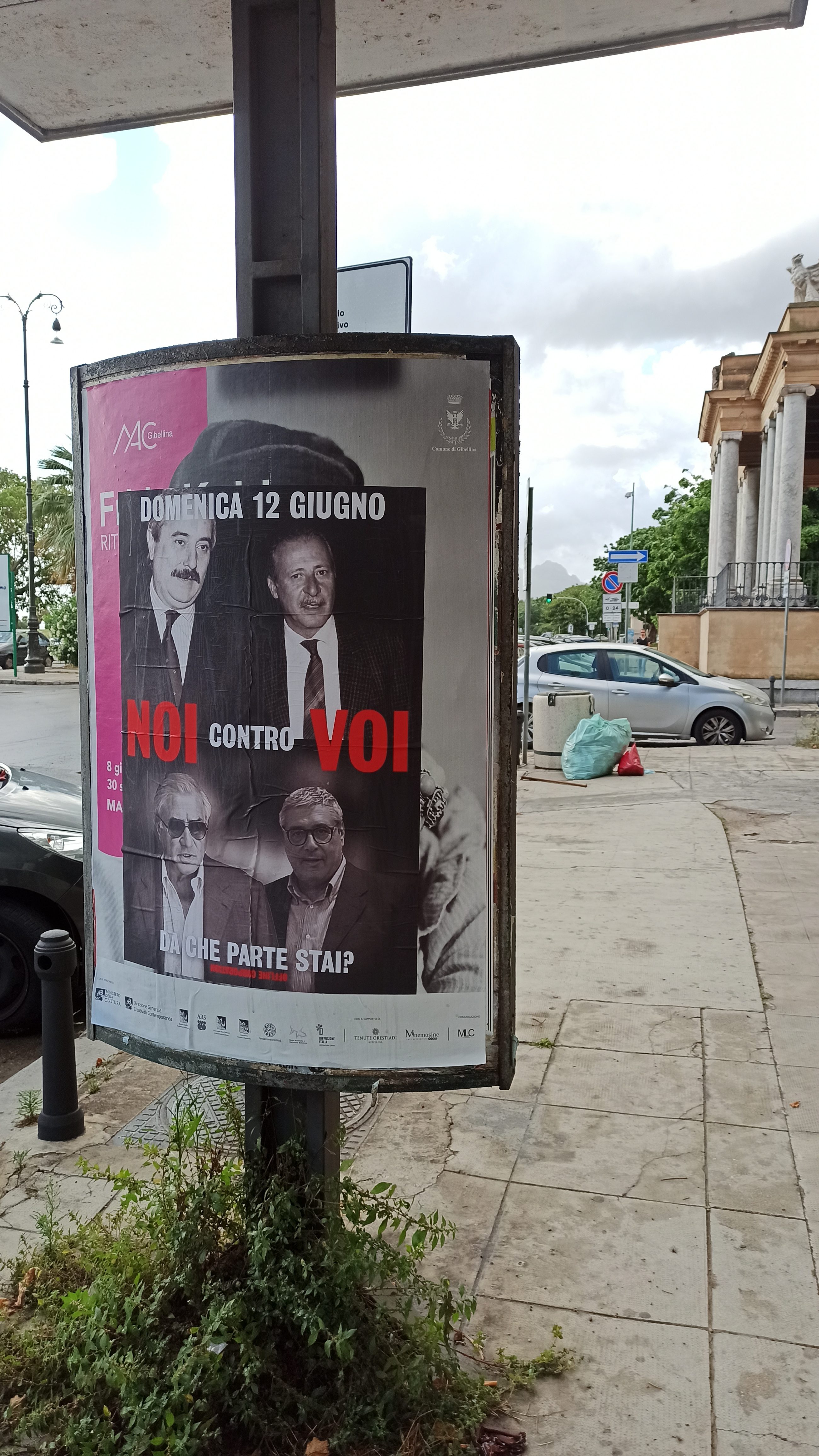 In occasione della commemorazione delle stragi di mafia l’organizzazione ha affisso altri poster per il centro città e nei pressi del murales in onore dei giudici Falcone e Borsellino alla Kalsa. Questa volta non erano i loghi dei partiti a campeggiare sui manifesti, ma un candidato: Vittorio Mangano accostato al partito “Forza Mafia” che nei manifesti chiede una Palermo libera dalla magistratura. Nei manifesti anche una rielaborazione della pubblicità di una Fiat 126, l’auto rubata da Gaspare Spatuzza e successivamente riempita di tritolo per uccidere il Giudice Paolo Borsellino.