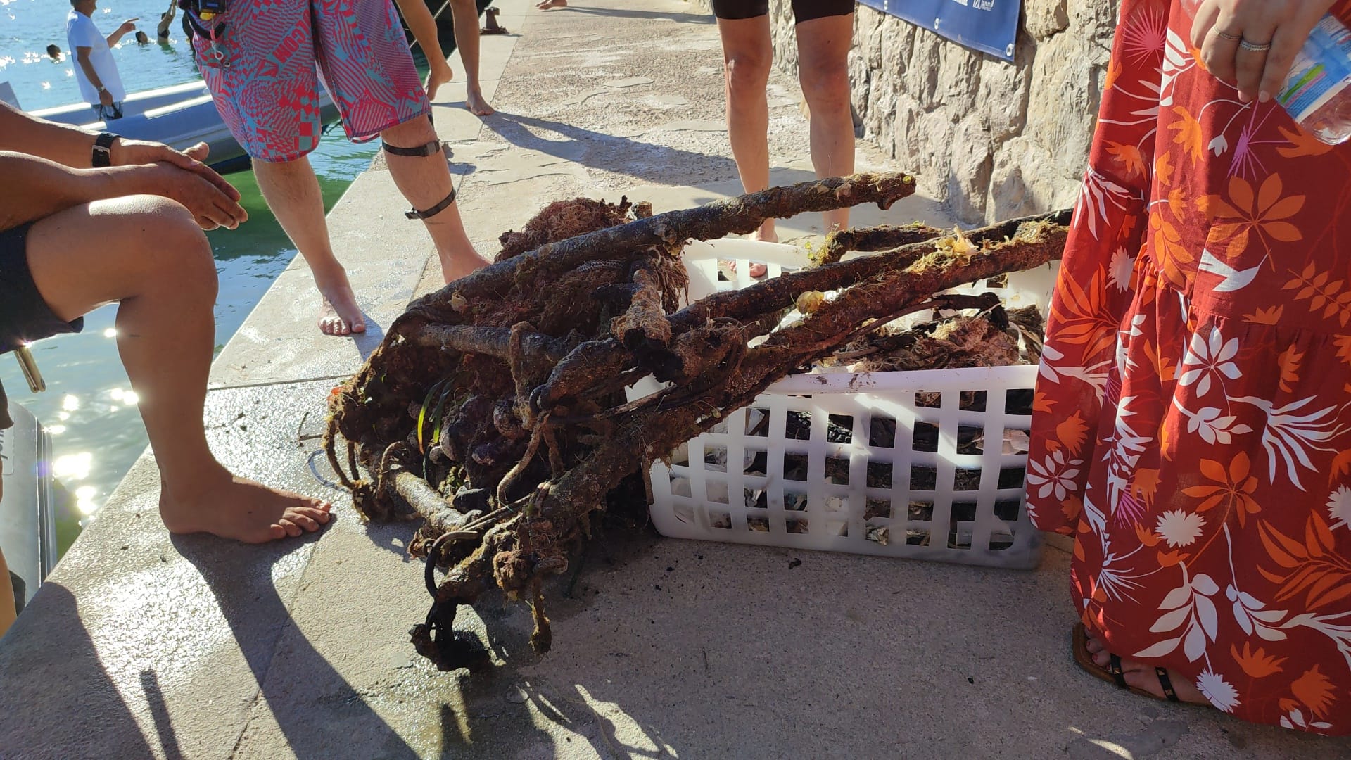 E sul molo, dopo tre ore di ricerche da parte delle squadre di volontari di apneisti, provetti e non, ci sono una trentina di sacchetti giganti colmi di rifiuti, già divisi per la raccolta differenziata, ceste colme materiale di ogni tipo incluso travi di legno e pezzi di eternit.
