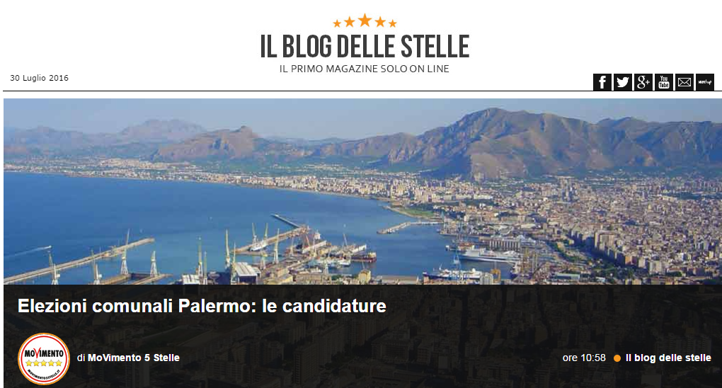 Candidato sindaco di Palermo cercasi. Il Movimento 5 stelle da il via libera alle procedure su internet per trovare il candidato da opporre a Leoluca Orlando e Fabrizio Ferrandelli nella prossima primavera quando si dovrà votare per il nuovo sindaco di Palermo.