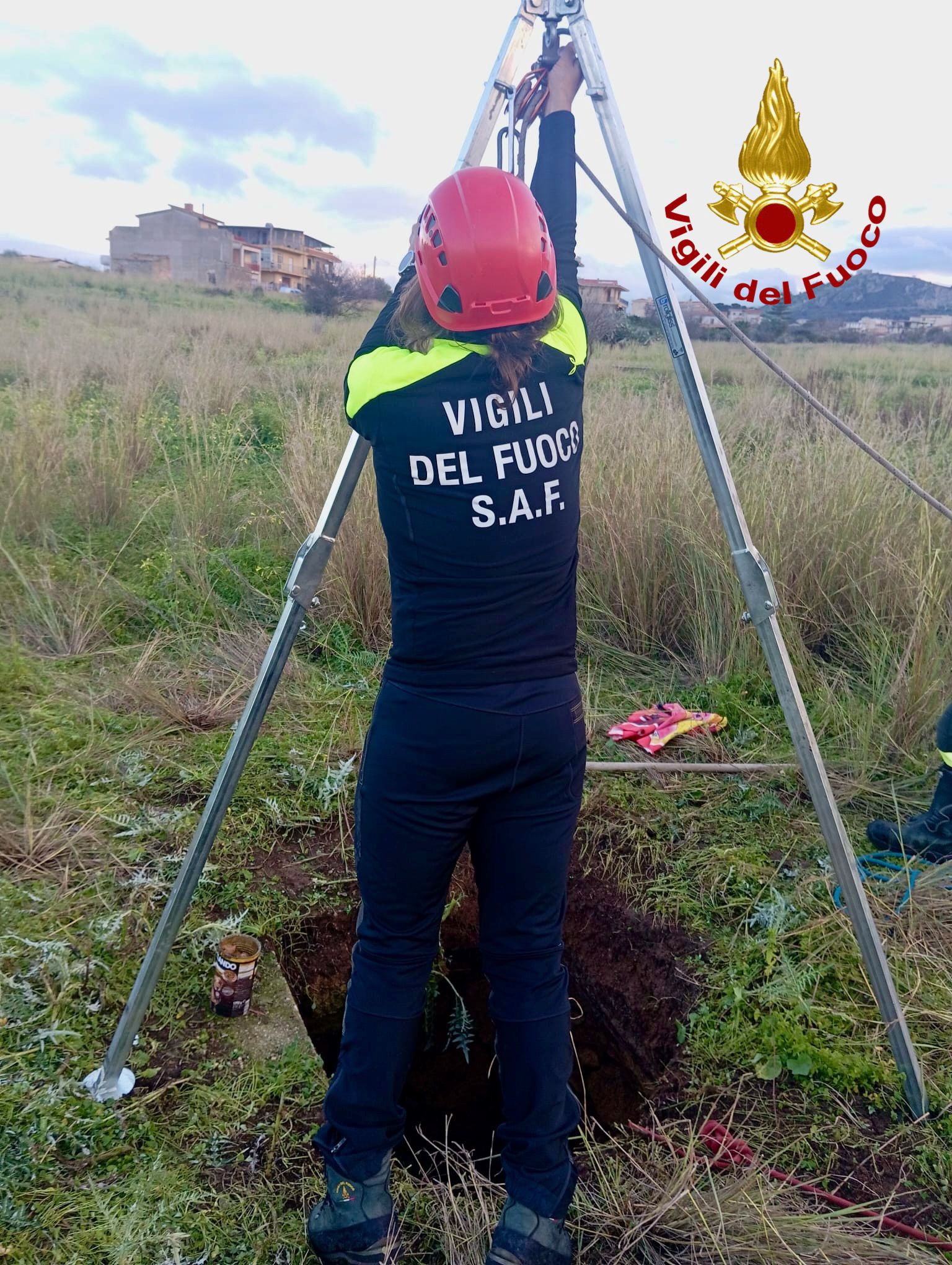 Cane caduto in un pozzo a Bagheria, salvato dai vigili del fuoco
