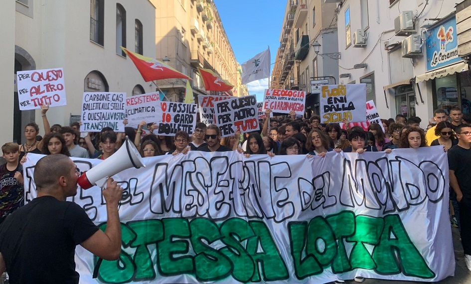 Durante il corteo le urla dei manifestanti che hanno sottolineato che “non c’è giustizia climatica senza giustizia sociale”, che non è più tempo di chiedere ai governi una reale transizione ecologica ma di lottare per cambiare il sistema. “Oggi si scende in piazza anche per Giuliano, studente morto qualche giorno fa in alternanza scuola-lavoro – continua Giorgio Caruso, rappresentante del liceo scientifico Einstein -. I responsabili che hanno provocato la morte di Giuliano, e degli altri studenti prima di lui, sono gli stessi che perpetrano il tipo di società e di lavoro che ci stanno portando verso il collasso eco-climatico. Va estirpato questo sistema di valori marcio, dalle sue fondamenta, a partire dai luoghi in cui si formano i giovani. Oggi scendiamo in piazza per questo, per altro, per tutto”.