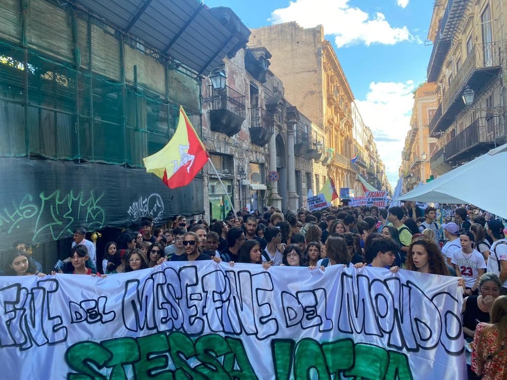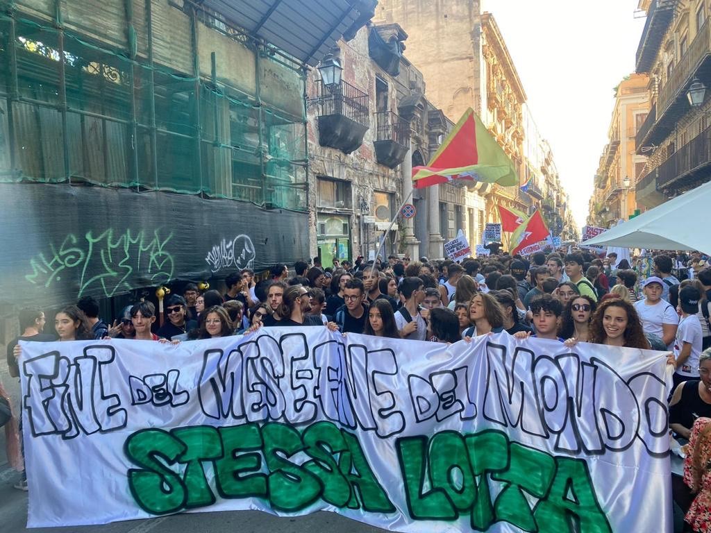 Mobilitazione anche a Palermo su caro bollette, inquinamento e alternanza scuola lavoro. Sono arrivate tante adesioni allo sciopero globale per il clima. Nel capoluogo siciliano gli studenti hanno attraversato le strade del centro, da piazza Verdi a piazza indipendenza, dove si trova il palazzo della Regione. La manifestazione è organizzata dal coordinamento “Studenti Palermitani” e dal collettivo di “Ecologia Politica Palermo”. “Fine del mese e fine del mondo sono la stessa lotta”, è questo lo slogan degli studenti palermitani che sono scesi in piazza anche contro l’alternanza scuola-lavoro, che ha ucciso un altro studente pochi giorni fa.