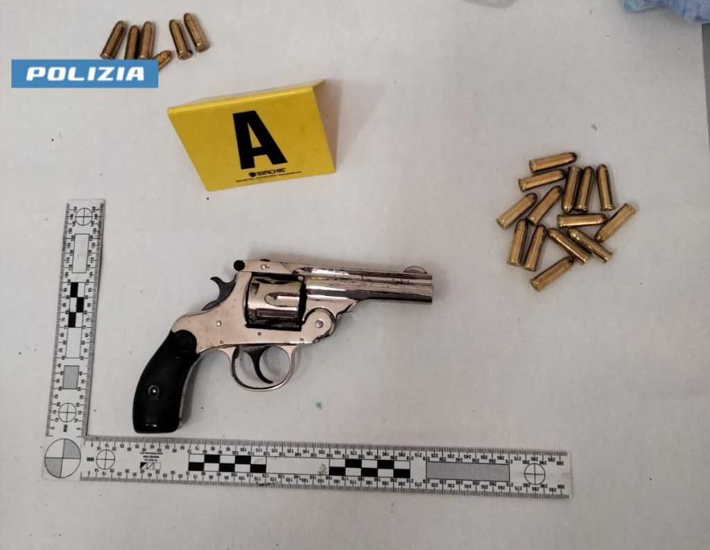 In casa dell’indagato i poliziotti del commissariato San Lorenzo hanno trovato una rivoltella impacchettata sotto uno scaffale in legno della veranda. Oltre al revolver calibro 21, carico, con tamburo chiuso contenente 6 cartucce sono state trovate altre 15 cartucce. Sono in corso indagini per accertare se i numeri della matricola poco leggibili sono stati cancellati o si sono usurati con il tempo. Il gip ha convalidato l’arresto e disposto gli arresti domiciliari con il braccialetto elettronico. Sono in corso ulteriori indagini per comprendere la provenienza dell’arma.