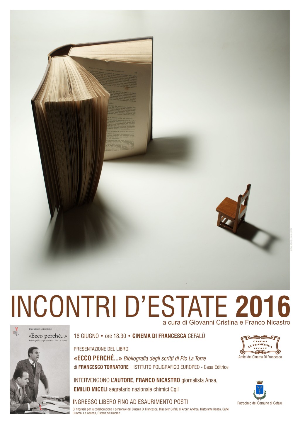 Al via il nuovo ciclo degli “Incontri d’estate”, rassegna culturale curata da Giovanni Cristina e Franco Nicastro che si terranno al cinema Di Francesca a Cefalù.