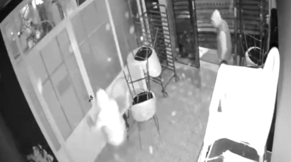 Le telecamere hanno ripreso tutte le fasi dell’intrusione. Le immagini mostrano due giovani incappucciati che, dopo aver sollevato la saracinesca, entrano nel bar e iniziano a colpire la porta a vetri prima con una sedia e poi con un piedistallo in metallo. Poco dopo la coppia di banditi, sentendo il sistema d’allarme, sono scappati a bordo di uno scooter sotto gli occhi della guardia giurata che ha chiamato i rinforzi e allertato anche i carabinieri.