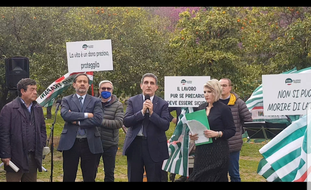 Istituita dal sindacato per commemorare chi ha perso la vita a causa degli incidenti e tenere alta l’attenzione di chi deve vigilare sul fenomeno, la cerimonia ha visto il suo momento centrale nell’area del giardino di Villa Trabia a Palermo. Qui, anni fa, fu piantumato un primo albero di ulivo e sistemata una targa. Il sindacato ha organizzato un momento di memoria e di impegno con un recital che ha commemorato le vittime attraverso i testi di poesie e monologhi sulle morti bianche, recitati dalle attrici Letizia Porcaro e Chiara Cusimano, accompagnate dalla chitarra di Toni Greco. Alla iniziativa sono intervenuti il segretario generale Cisl Palermo-Trapani Leonardo La Piana, il segretario generale Cisl Sicilia Sebastiano Cappuccio, per il Comune di Palermo l’assessore comunale Ville e Giardini Sergio Marino, il presidente di Acli Palermo Nino Tranchina, il presidente del comitato provinciale Inail Palermo Gaspare Caldarella e il segretario Siulp Palermo Francesco Quattrocchi. I dati confermano che bisogna ancora fare molto in tema di prevenzione e controlli.