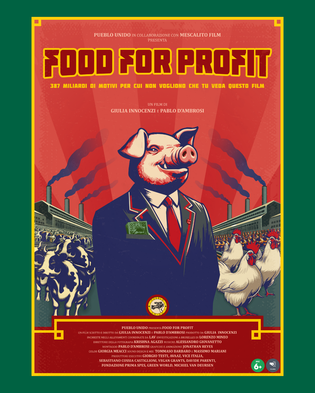 Il film denuncia il legame tra allevamenti intensivi, finanziamenti pubblici e crisi ambientale, offrendo uno sguardo lucido e documentato su una delle industrie più controverse del nostro tempo. Dopo la proiezione, ci sarà spazio per confrontarsi, fare domande, riflettere insieme.
