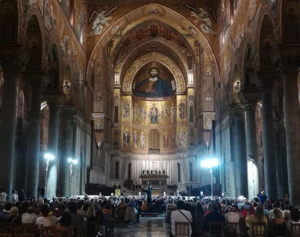 Grande successo per l’esibizione dell’Orchestra sinfonica siciliana nella splendida cornice del duomo di Monreale. Il concerto, in un primo momento, era stato previsto in piazza Guglielmo poi, a causa di alcuni disguidi tecnici, è stato spostato in cattedrale, per la gioia dei numerosi appassionati accorsi ad assistere all’esecuzione, fra cui lo stesso sovrintendente dell’Orchestra sinfonica, Antonino Marcellino.