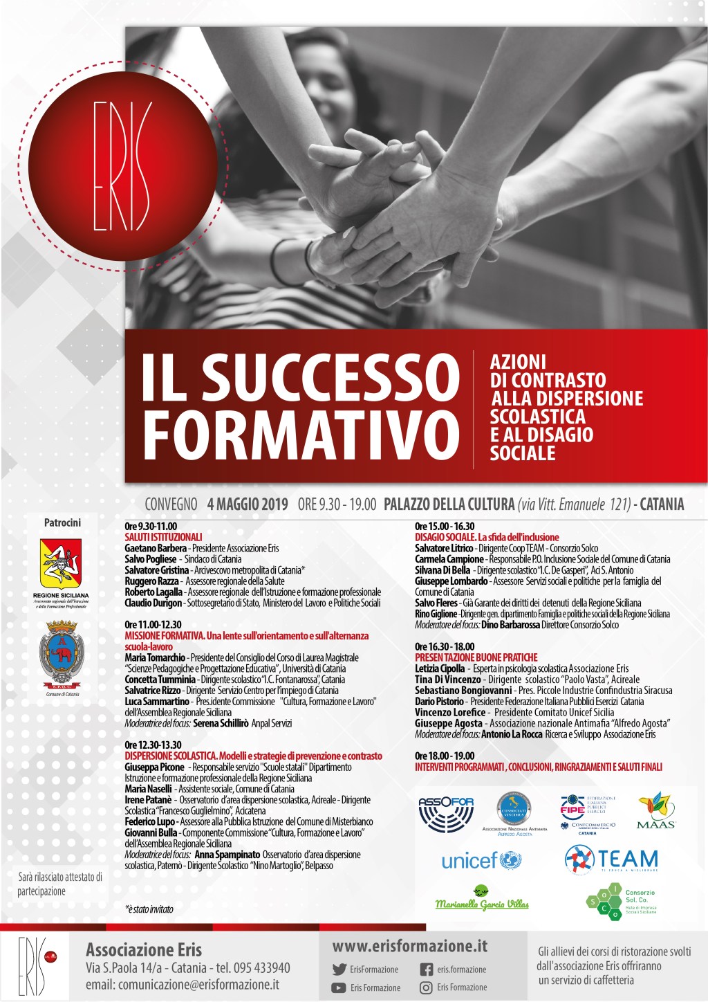 Il “Successo formativo” quale azione di contrasto alla dispersione scolastica e al disagio sociale. È il punto cardine della giornata di confronto e di analisi sui temi della formazione organizzato dall’associazione Eris, fra i primi enti di istruzione e formazione professionale, agenzia per il Lavoro, in Sicilia.