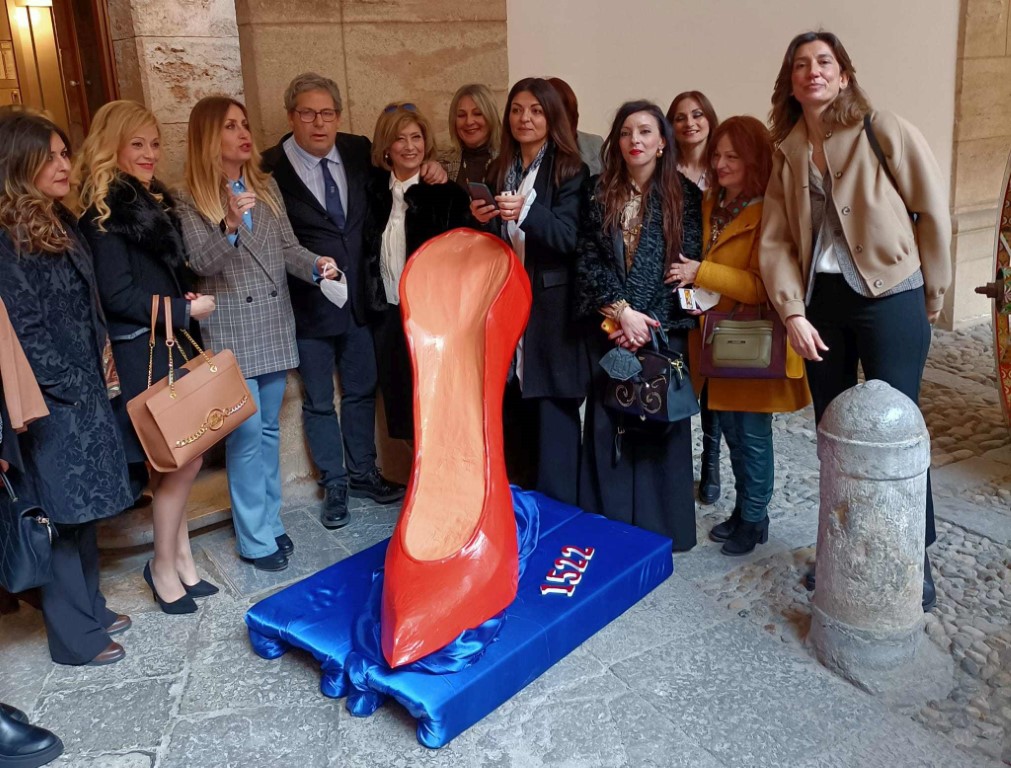 Su iniziativa di Azzurro Donna è stata collocata a Palazzo dei Normanni, sede del Parlamento siciliano, una scarpa rossa simbolo del contrasto alla violenza sulle donne.