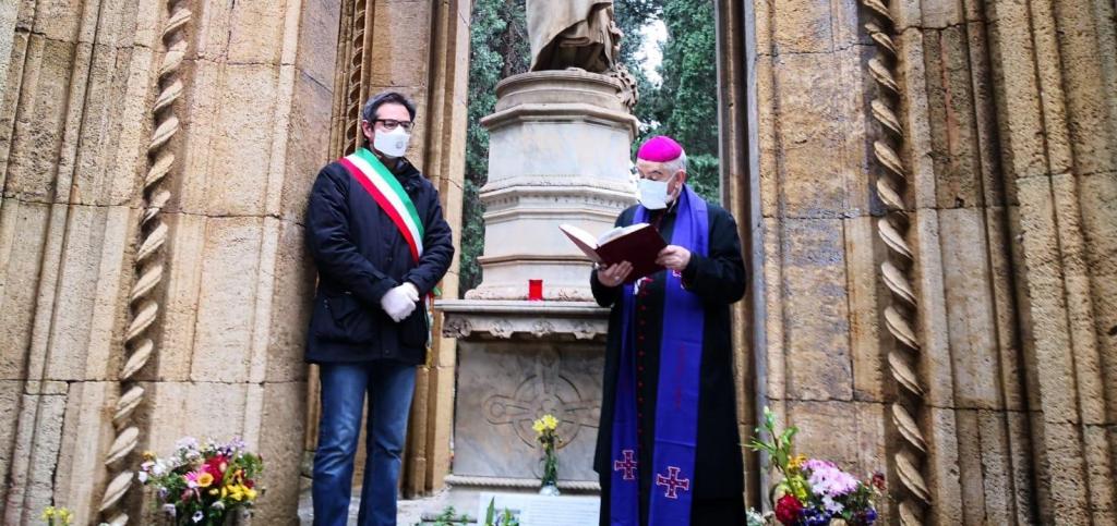 L’arcivescovo di Monreale Michele Pennisi, insieme al sindaco Alberto Arcidiacono, hanno pregato davanti alla statura di Santa Rosalia che si trova nel cimitero monumentale di Monreale.