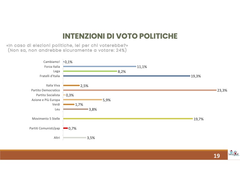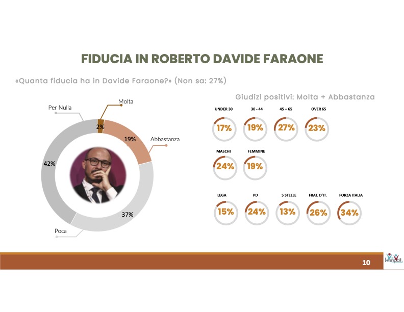 Se invece non dovessero concretizzarsi accordi a campo largo, il preferito del centrosinistra (coalizione Pd-M5S-Sinistra e liste civiche) sarebbe Gianpiero Trizzino (25,3%, segue l’ex rettore Fabrizio Micari al 24,4%); per il centrodestra classico invece il 39,4% dei cittadini intervistato preferirebbe Lagalla.