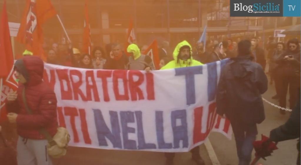 Durante il corteo i lavoratori, che indossavano una maschera raffigurante la faccia del premier Matteo Renzi in polemica con il governo nazionale, hanno gridato: “Vogliono seppellire la nostra storia, la nostra azienda, il nostro salario, i nostri diritti, la nostra dignità”, “Non farti seppellire vivo”,“Partecipa alla lotta”.