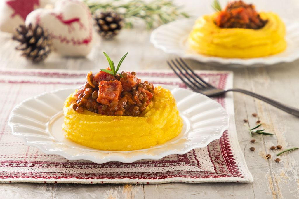 Nidi di polenta con cotechino e lenticchie