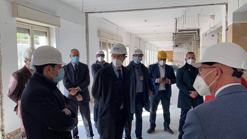 Questa mattina un sopralluogo di Musumeci all’ospedale Cervello. La struttura commissariale tecnica, diretta da Tuccio D’Urso, sta curando, nell’ambito dello stesso intervento, che vengano anche rinnovate le centrali di produzione del caldo e del freddo, nonché le cabine elettriche principali e la rete di distribuzione dell’energia. Prossimi a partire anche i lavori relativi all’intero Padiglione A, in corso di progettazione esecutiva.