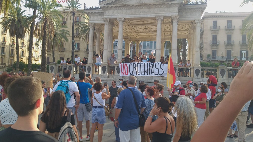 No Green Pass“: sotto questo eloquente slogan un centinaio di persone si sono date appunamento in piazza Castelnuovo, a Palermo, per esprimere il proprio dissenso relativamente alla misura prevista dal Governo del premier Mario Draghi. In seguito al provvedimento emanato a livello nazionale, la campagna vaccinale ha avuto un deciso upgrade di aderenti.