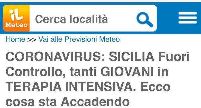 “IlMeteo.it sta diffondendo una notizia FALSA”. A scriverlo sul suo profilo facebook è l’assessore regionale per la Salute Ruggero Razza dopo che un sito di previsioni meteo che da qualche tempo ha iniziato a scrivere anche di altro ha diffuso un articolo nel quale si titola su una situazione epidemiologica siciliana ormai fuori controllo. “Tanti giovani in terapia intensiva – scrive il sito – NON È VERO – replica a caratteri maiuscolo l’assessore regionale.
