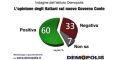 6 italiani su 10 esprimono un’opinione positiva sul Governo Conte; di segno differente è il giudizio di circa un terzo dei cittadini. Il dato emerge dall’indagine condotta dall’Istituto Demopolis, diretto da Pietro Vento, a 20 giorni dall’insediamento dell’Esecutivo M5S-Lega.