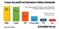 Secondo il Barometro Politico Demopolis, il Movimento 5 Stelle otterrebbe oggi il 29%: un punto sopra il suo alleato di Governo, la Lega, al 28%, cresciuta di oltre 10 punti in poco più di tre mesi. Stabile il Partito Democratico al 19%; in calo Forza Italia al 10% e Fratelli d’Italia al 3,8%. LeU, col 2,5%, non entrerebbe in Parlamento.