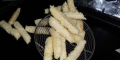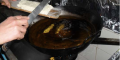 Per facilitare la creazione delle crespelle che vengono direttamente buttate dentro al padella con l’olio (5-7 centimetri di olio, in una padella con il bordo alto) già ad una temperatura di 150°-160°. (piccolo segreto: più buono è l’olio migliore è il risultato). La frittura si fa in due tempi, la prima è per dividere in porzioni il composto delle crespelle, non buttarle vicine nè metterne tante perché si attaccano l’uno all’altra, man mano che sono compatte si vanno togliendo dalla padella e si continua fino ad esaurire l’impasto.