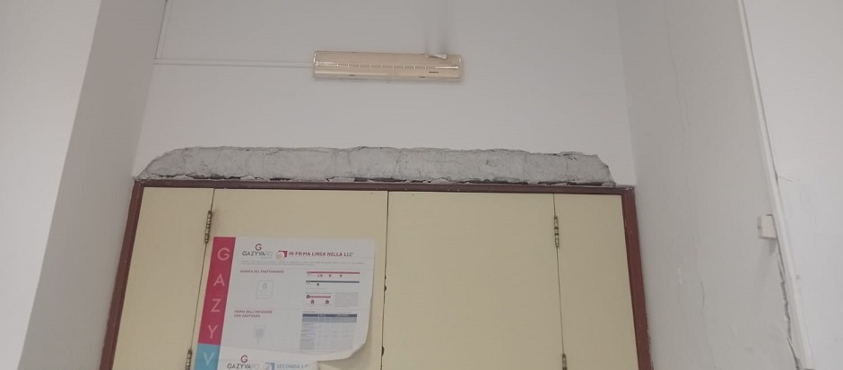 Crollato l’intonaco sopra la porta nell’ambulatorio di ematologia dell’ospedale Policlinico di Palermo.