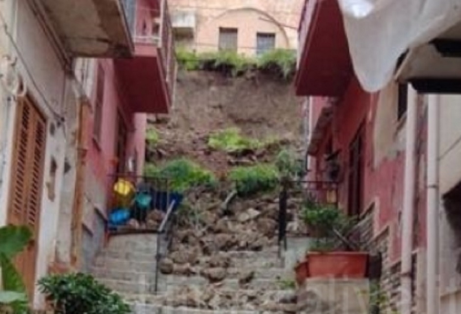Crolla un muro a Termini Imerese, si scava sotto le macerie, nessun ferito