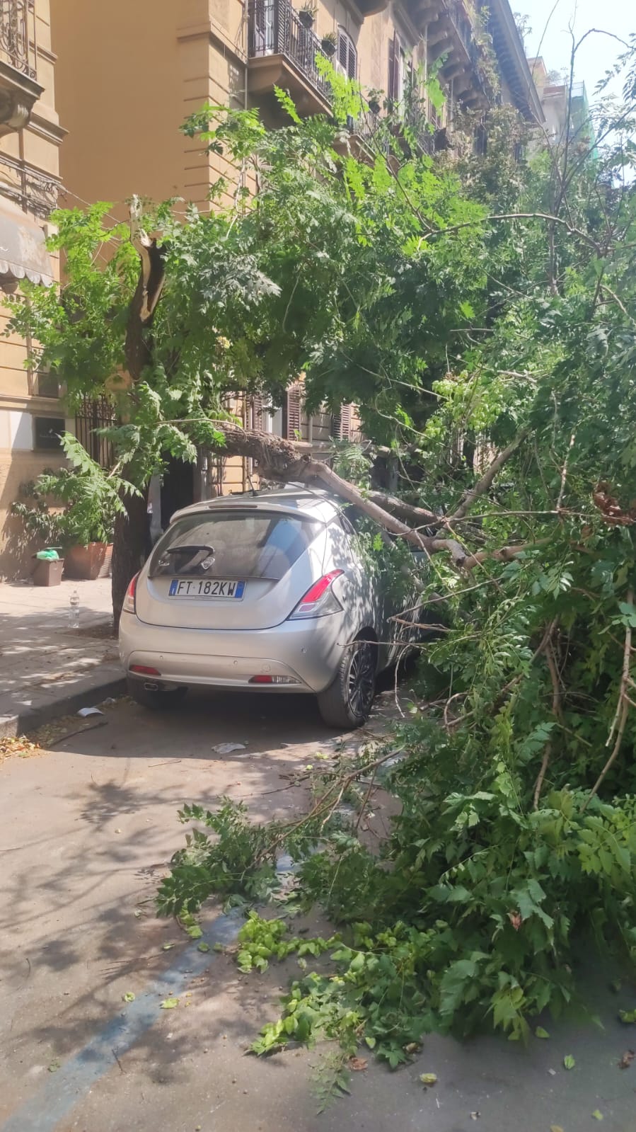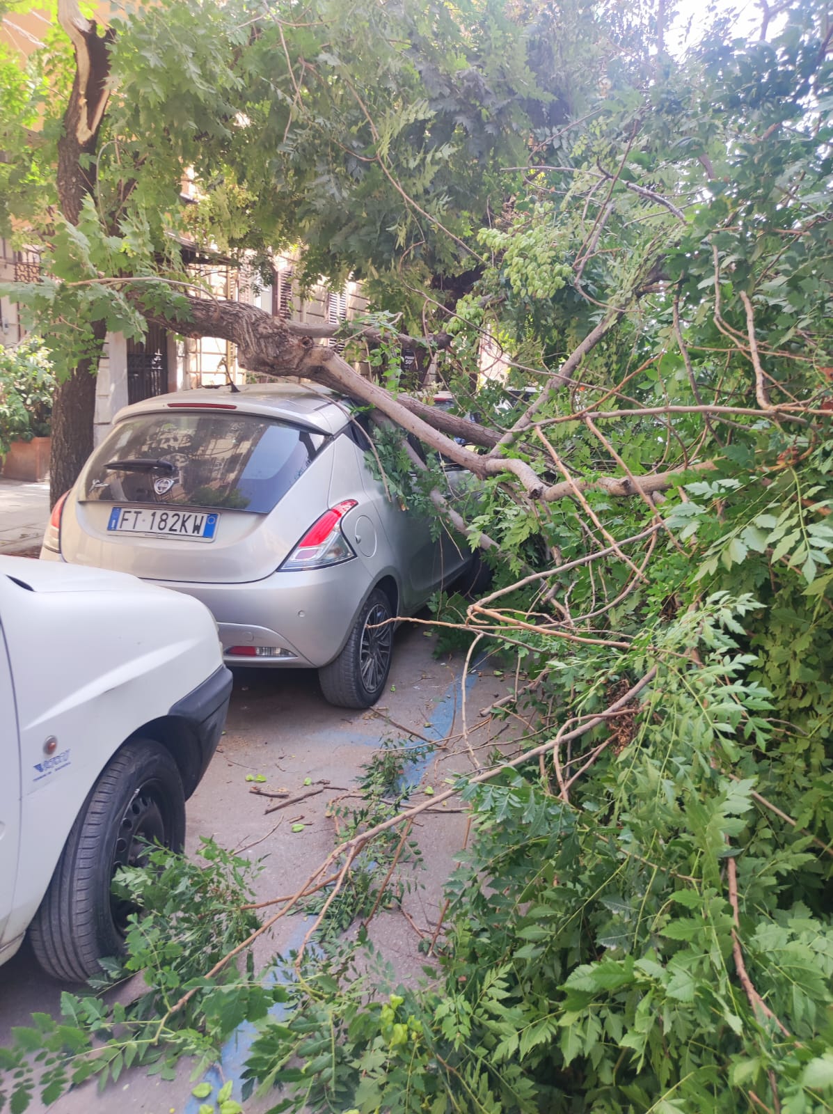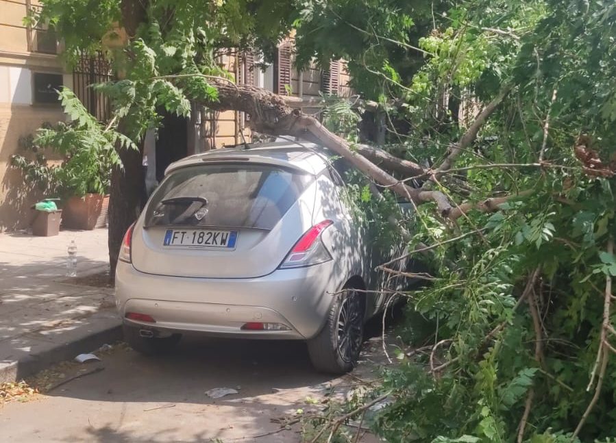 Si spezza e crolla un grosso ramo di un albero in via Enrico Albanese nel centro di Palermo. A causa del vento caldo di scirocco e dell’arsura di queste ore, il ramo di un grosso albero si è spezzato rovinando sulle auto in sosta nei pressi del civico 29 di via Enrico Albanese.