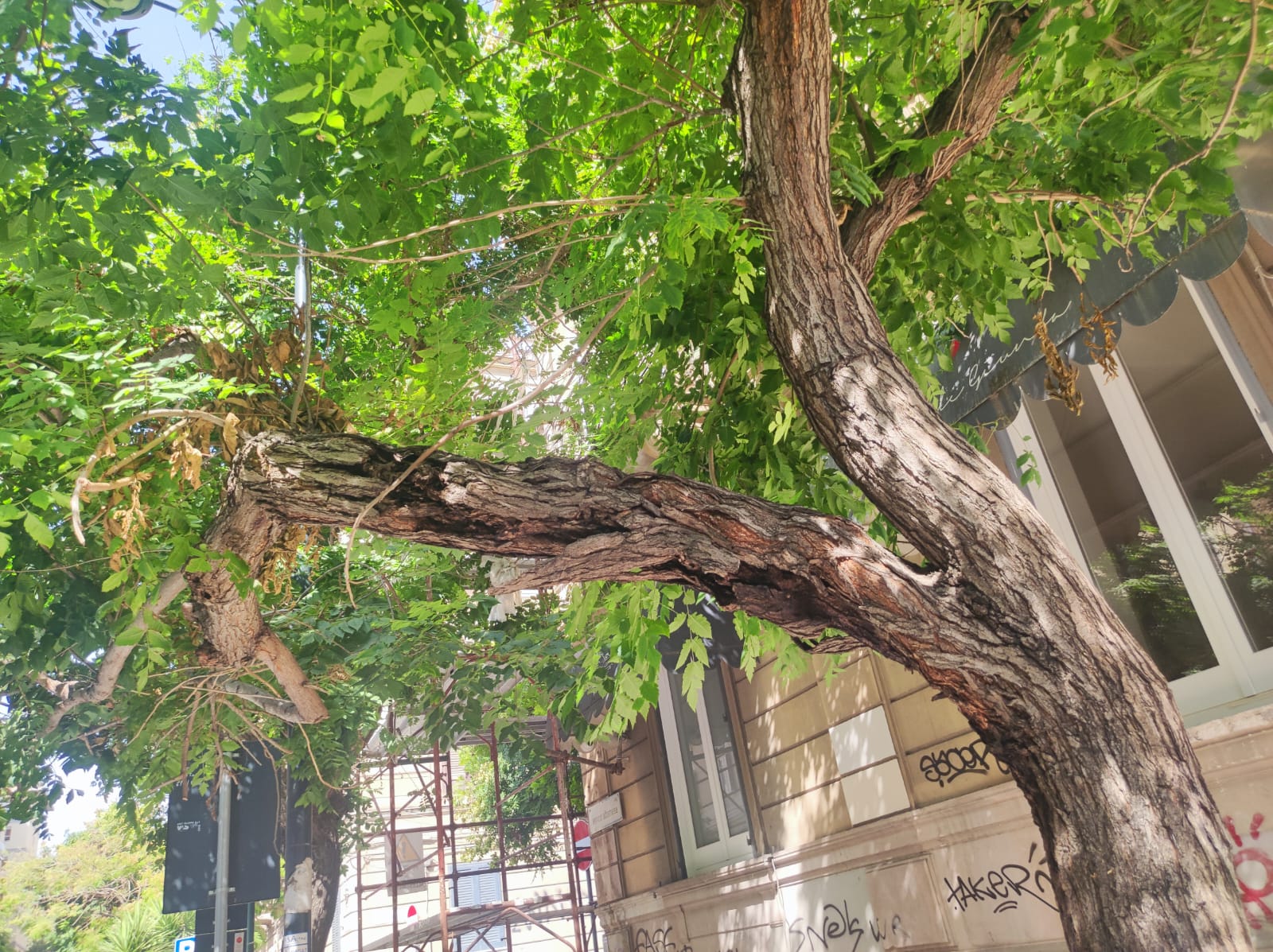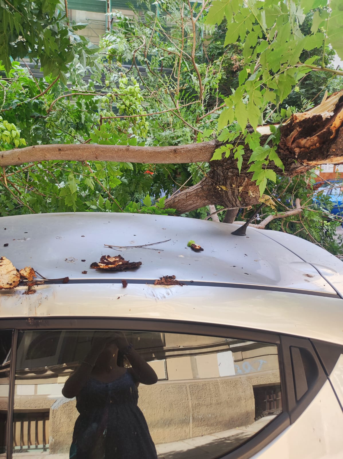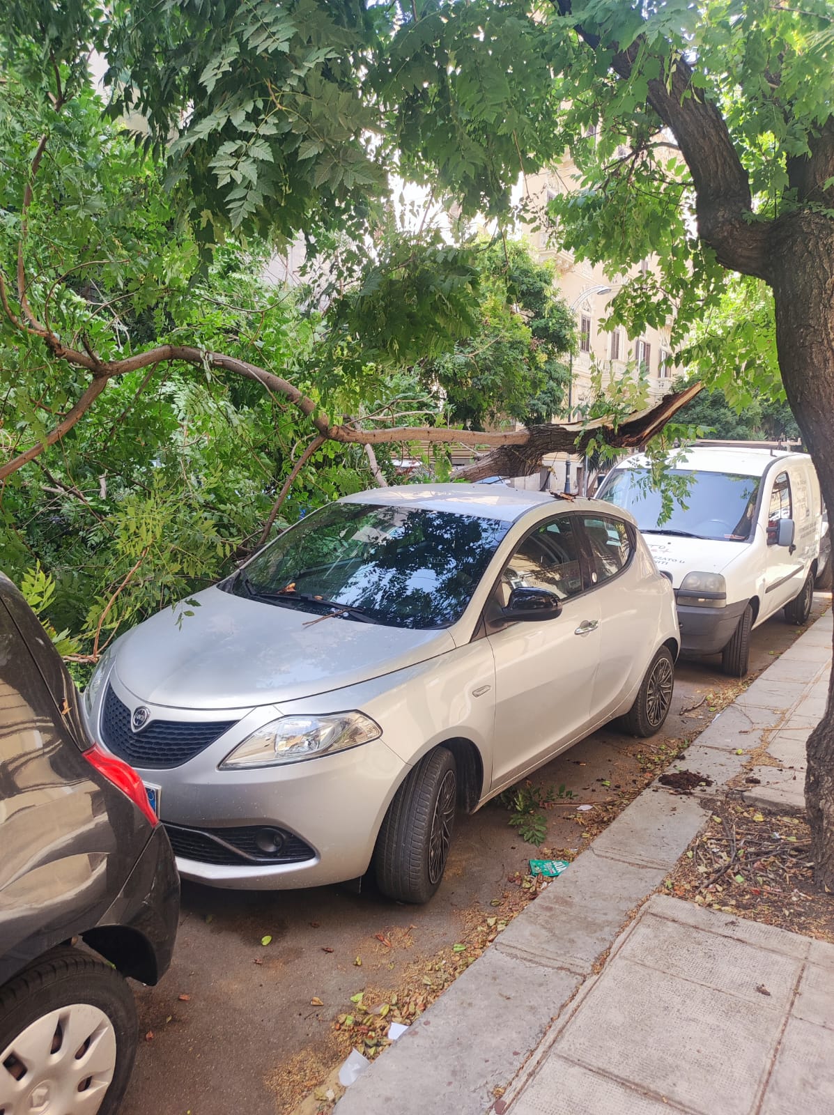 Si spezza e crolla un grosso ramo di un albero in via Enrico Albanese nel centro di Palermo. A causa del vento caldo di scirocco e dell’arsura di queste ore, il ramo di un grosso albero si è spezzato rovinando sulle auto in sosta nei pressi del civico 29 di via Enrico Albanese.