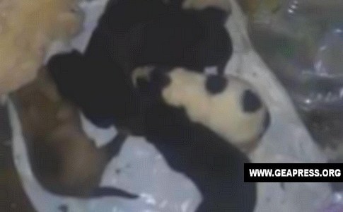 Un’intera cucciolata di cane. Piccoli animali con poche ore di vita. Occhi chiusi e tanta necessità di calore ed attenzioni particolari.